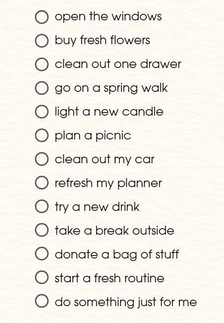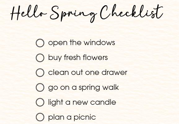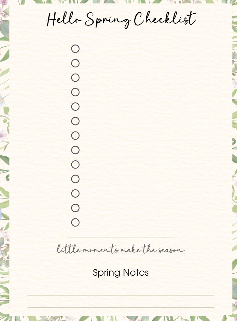 Use the pre-filled list for inspiration or the blank version to create your own spring goals and moments.