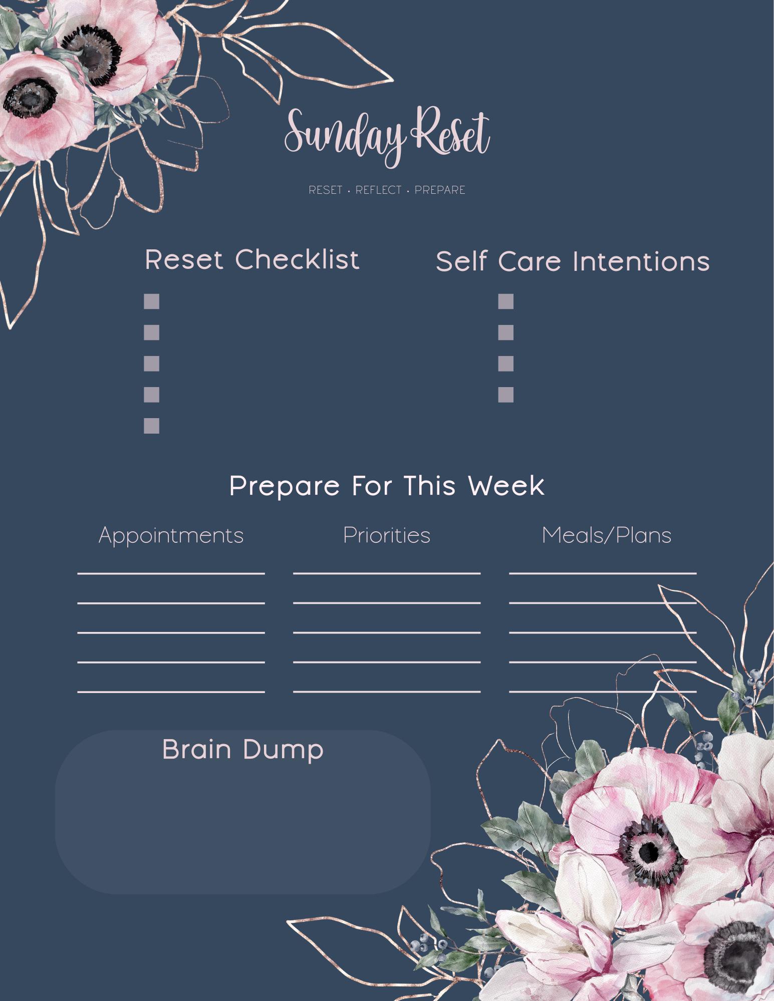 Sunday Reset Planner Page | Weekly Reset Checklist & Brain Dump